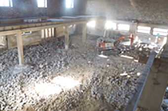 La maison de maître, en bordure de la rue principale de Chantrans, a demandé quelques travaux d’aménagement, mais le plus gros du chantier restera la transformation de l’étable attenante. En effet, cette surface de plus de 300m2, avec ses quatre murs et son imposant volume ne possède pas à son centre d’une retombée de charpente laissant donc la place pour ériger une chapelle. Celle-ci fera 18,50 mètres de long sur 8 mètres de large avec une voûte en épicéa qui s’élèvera à 9 mètres de haut et pourra recevoir les grandes orgues qui étaient déjà installées dans la crypte à Mouthier. Équipés de quelques machines, les trois moines ouvriers n’ont pas ménagé leurs efforts, car toute la démolition est maintenant terminée. Les sols ont été refaits. La phase de la construction est lancée sous la conduite de l’abbé Marchiset qui possède une formation d’architecte et plus de 40 ans d’expérience dans le bâtiment.