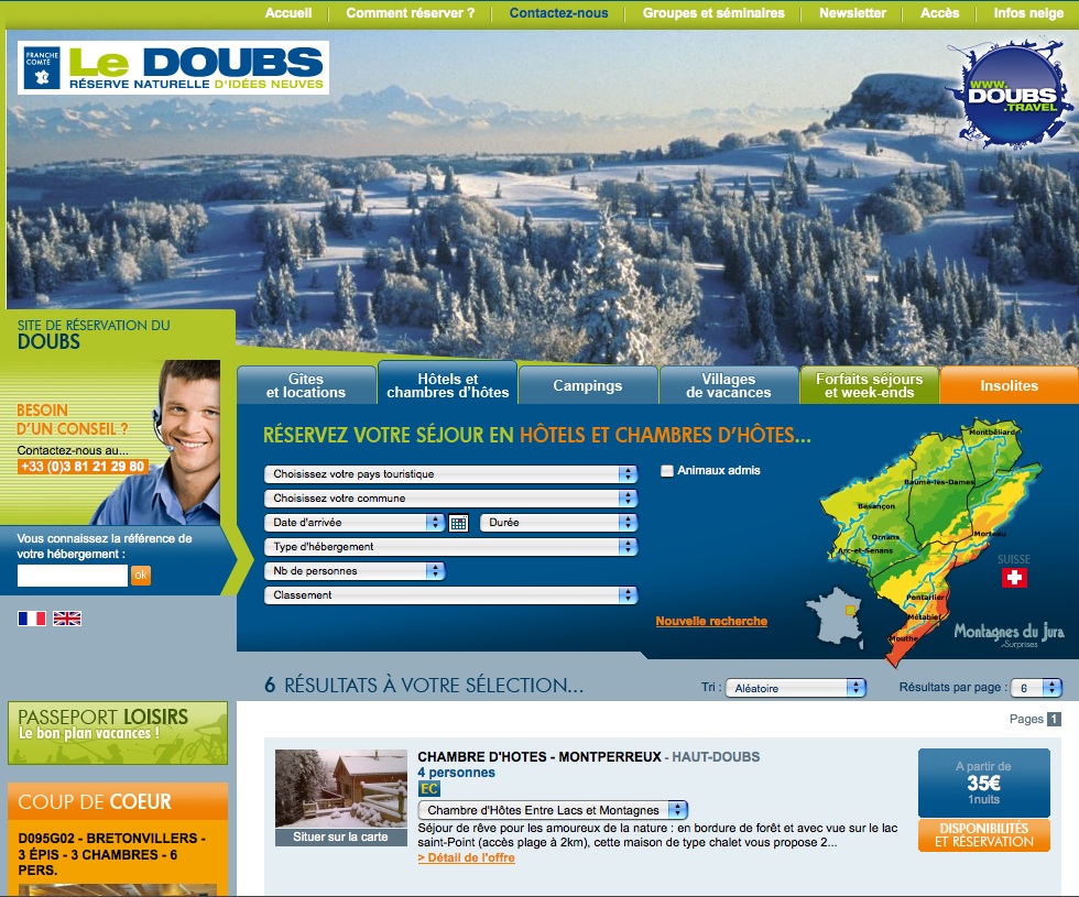 Des rubriques pratiques – comment réserver, newsletter, accès, infos neige, groupes et séminaires, langues étrangères, promotions, contacts… – complètent ce nouveau site et devraient faciliter la commercialisation de l’offre touristique du Doubs.
