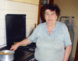 Lulu : Il faut bien… Bon j’fais toujours une soupe, exceptionnellement pas ces jours-ci, vu qu’il fait chaud, j’la remplace par des oeufs durs, des tomates et des fois des carottes rappées. Aujourd’hui j’ai fait un gratin de courgettes mais j’aime pas trop ça, on n’a jamais été habitué, dans le temps on n’en avait pas. J’aime mieux un gratin de pommes de terre ou de pâtes. (…)